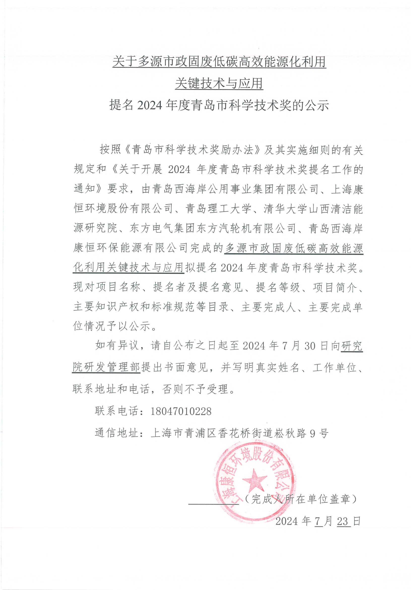 2024年度青岛市科技进步奖提名公示内容文件如下: